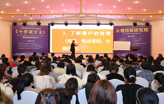 火爆招商研究院一開始就立足于公益、實戰(zhàn)、實用和提升。我們不是名義上的所謂“火爆招商研究院”,我們是實體火爆招商研究院:幾百平米容納數百人的會議室及音響影音設備,200多人的人才團隊,訓練有素的會務策劃、組織實施精英團隊,國內美業(yè)營銷管理實戰(zhàn)講師.....