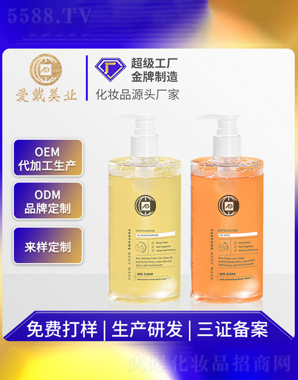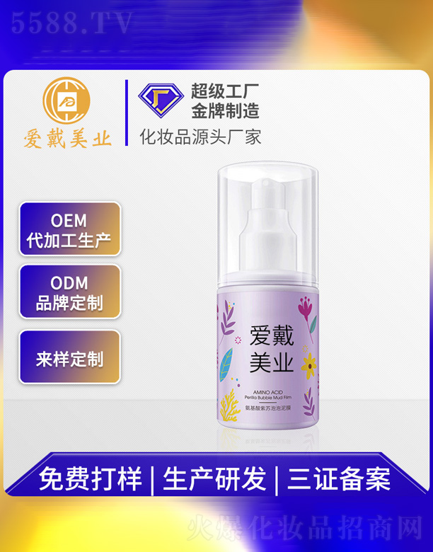 廣州愛戴化妝品有限公司成立于1994年,配備日本VQ—1—1300M型真空乳化機(jī)、350M乳化罐、去離子水設(shè)備以及配套的膏體罐裝生產(chǎn)線、液體罐裝生產(chǎn)線、鋁箔袋罐裝生產(chǎn)線等現(xiàn)代化設(shè)備,達(dá)到年產(chǎn)洗滌類5000噸、膏霜類2000噸,可以同時生產(chǎn)灌裝40個以上品種的強(qiáng)大生產(chǎn)能力,使公司成為國內(nèi)大型的現(xiàn)代化生產(chǎn)企業(yè),雄視產(chǎn)業(yè)風(fēng)云市場。